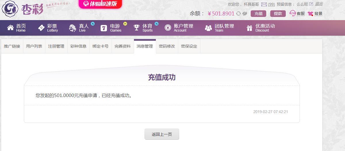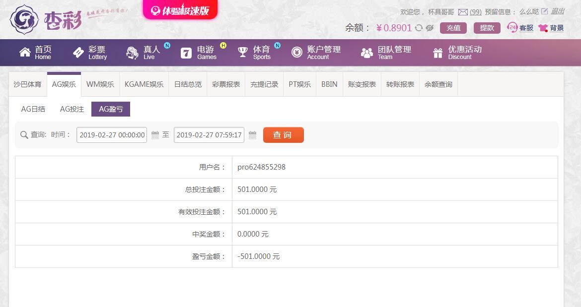 [|输单补偿] 2月27日杏彩亏损501 |