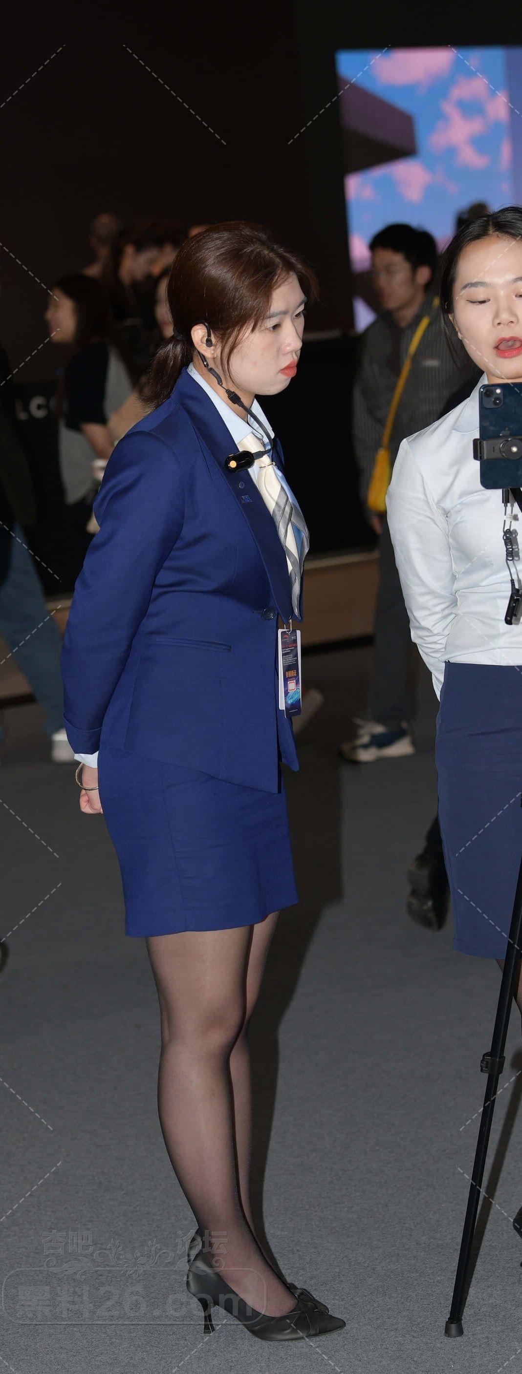 蓝色制服装成熟女售车员一旁辅助女同事直播【10P】