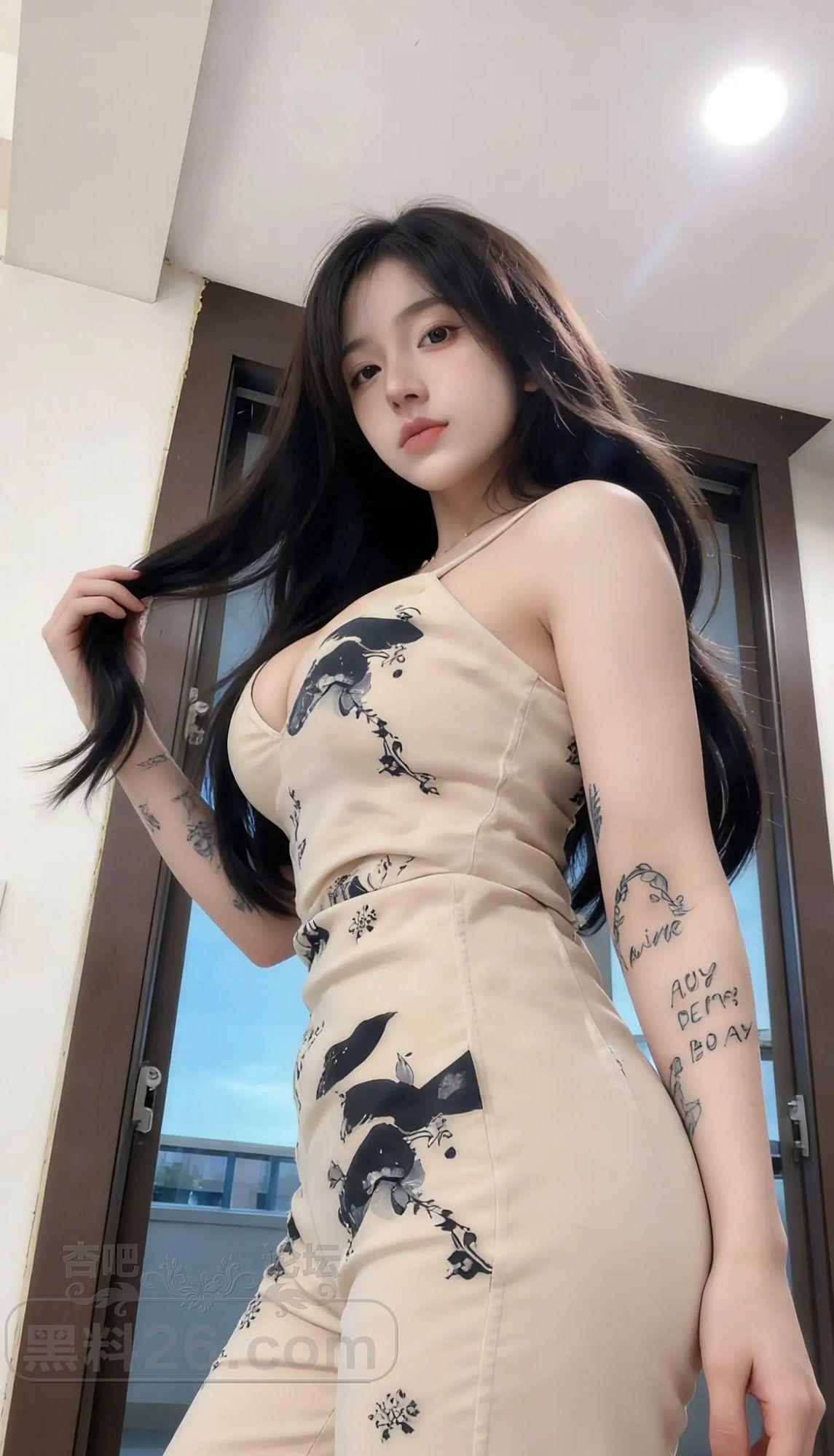 性感纹身辣妹紧身吊带裙秀完美比例 发丝飘逸动人心弦【25P】