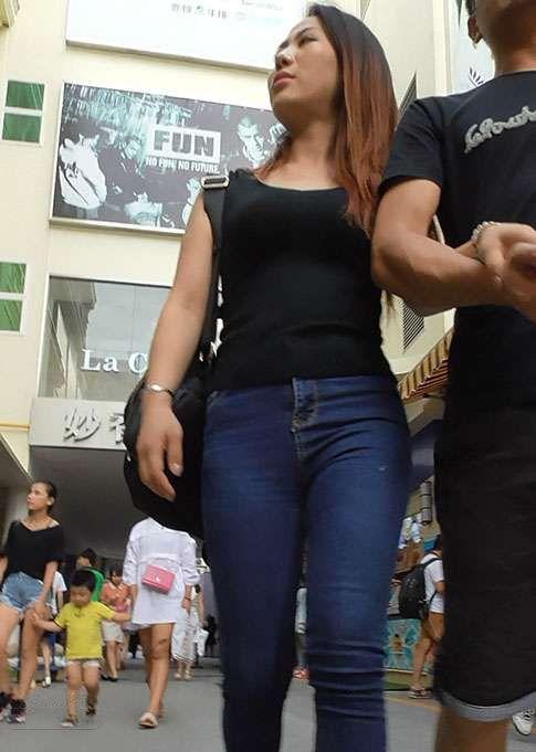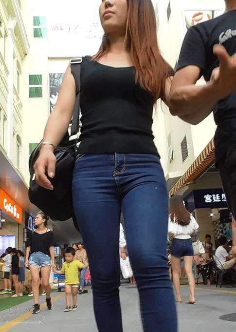 街拍饱满的牛仔裤美女,紧身蜜桃臀圆润的扭动格外性感【20P】