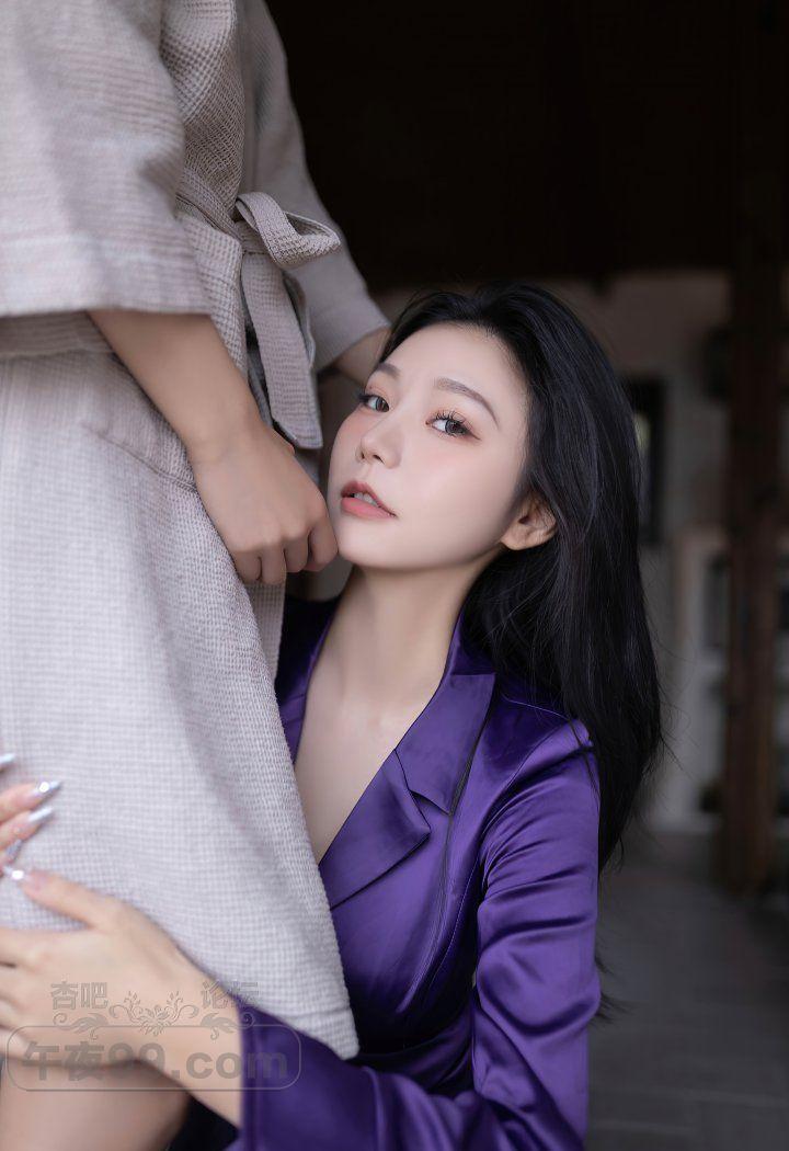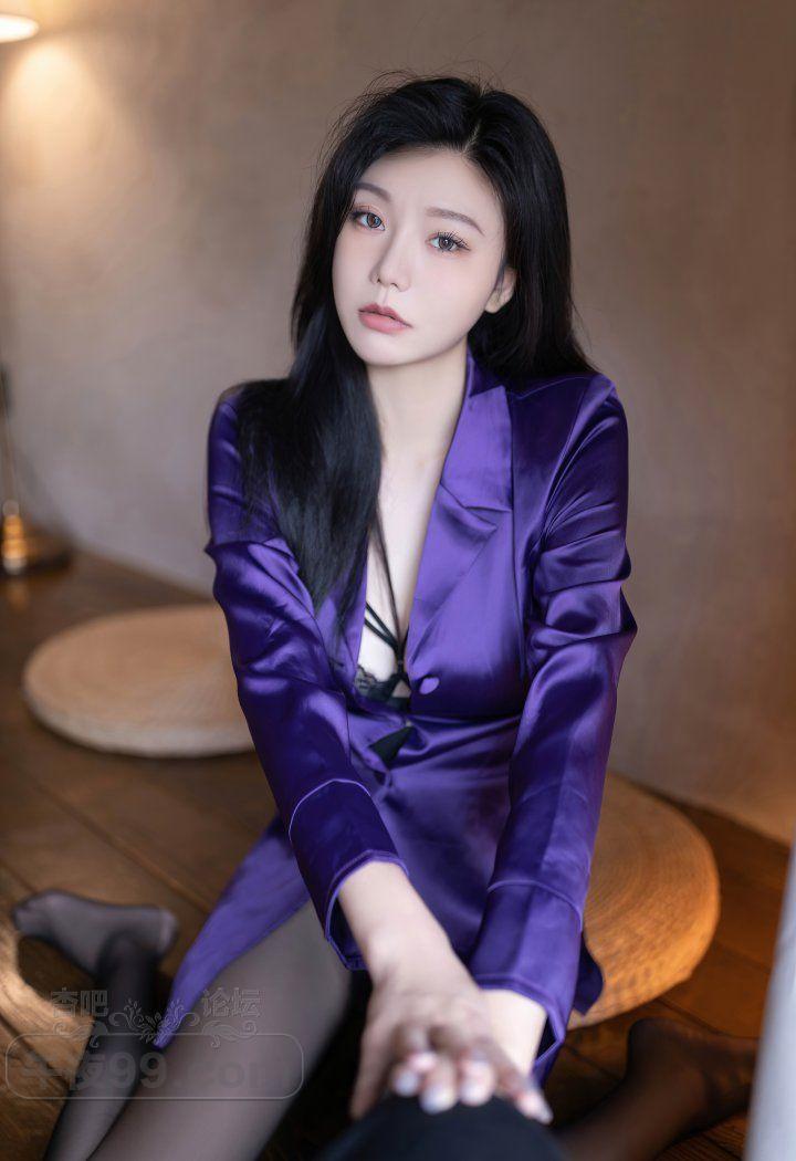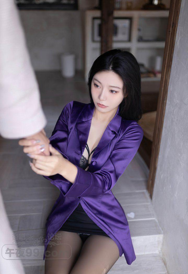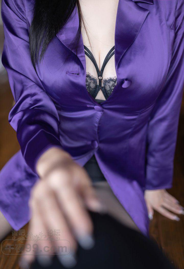 成熟香艳美少妇紫色睡袍黑色蕾丝内衣丝袜美腿销魂【20P】